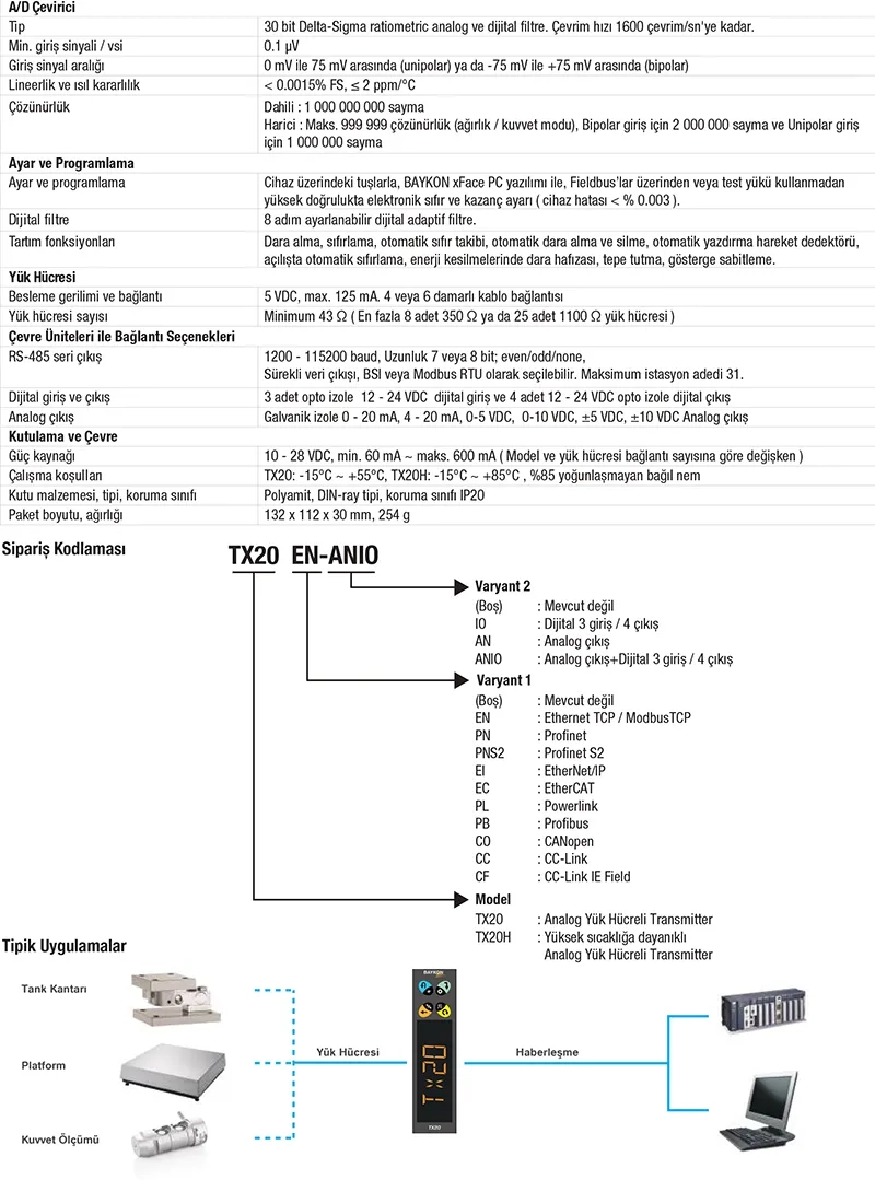 Analog yük hücrelerinden oluşan statik-dinamik tartım sistemleri, kuvvet, moment ve basınç ölçüm prosesleri için tasarlanmış endüstriyel sınıf transmitter.